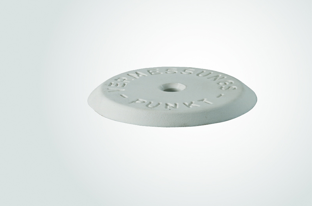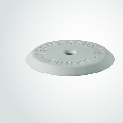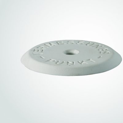 Arandela de plástico blanco para topografía de 60 mm de diámetros exterior. Inscripción VERM.-PUNKT