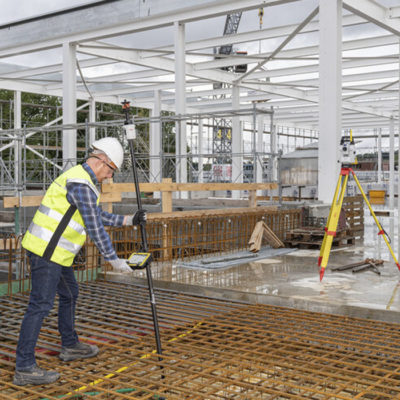 Bastón Leica GLS51 desarrollado con el Leica AP20 AutoPole, un sistema inteligente único que aumenta la productividad al permitir la medición de puntos con un bastón inclinado, midiendo automáticamente alturas de objetivos de hasta 2,20 m, además de buscar y bloquear un objetivo específico.