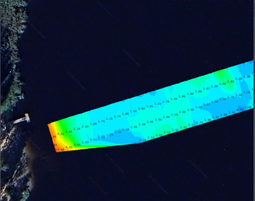 Esto permite cartografiar la profundidad y medir el espesor y la cantidad de sedimentos en la masa de agua.